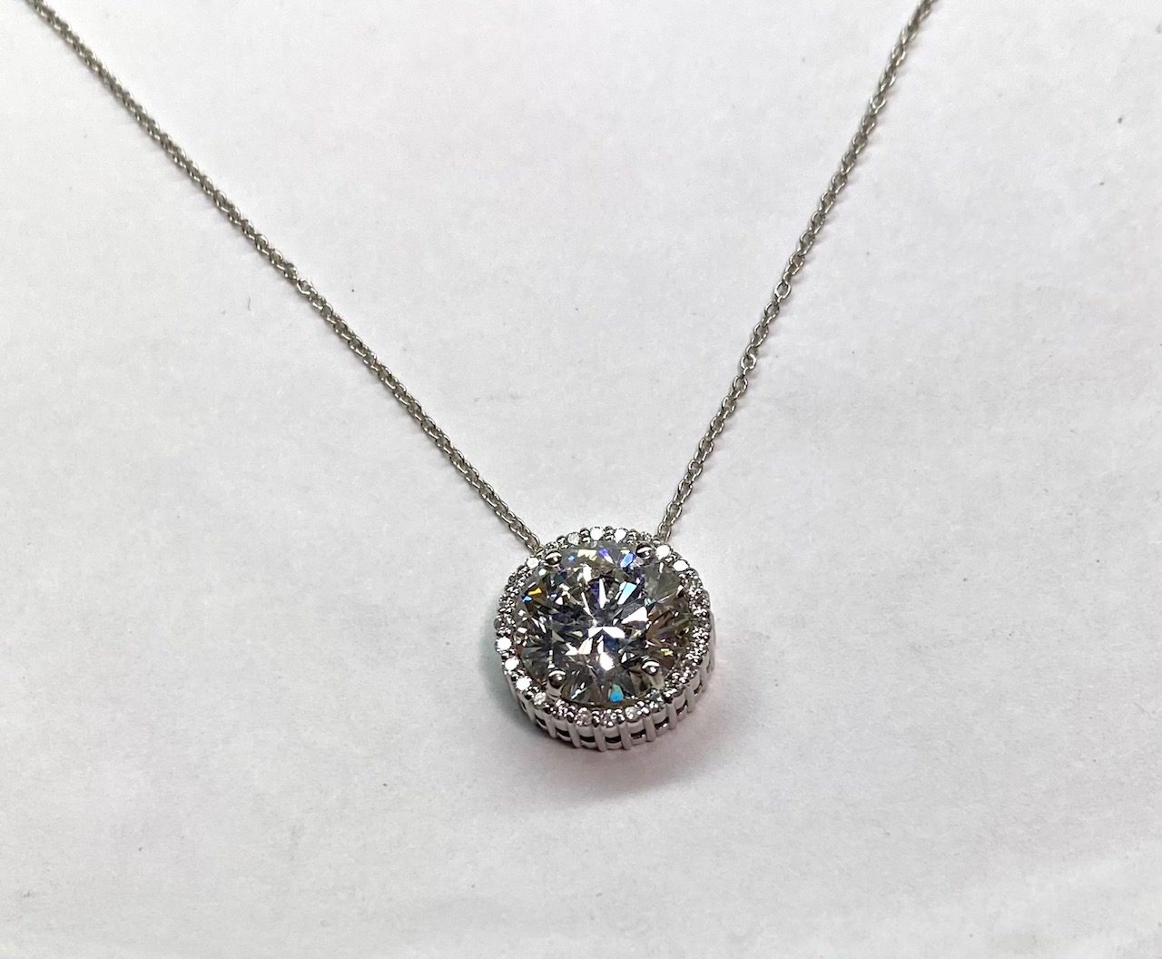 This sizeable lab grown diamond is a round-cut shape clocking in at 3.67 CT. It also features: